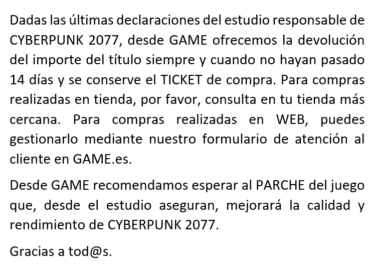 Y el drama con Cybercrunch continua.Sony está devolviendo el dinero a los compradores del juego en Ps4.Yo directamente pienso que la versión en consolas de este juego debería de retirarse del mercado.Como pasó con el Batman:Arkham Knight cuando era un absoluto desastre en PC.
